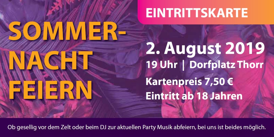 Hier Können Sie Karten für unser SOMMERNACHTFEIERN am 02. August 2019 reservieren.
